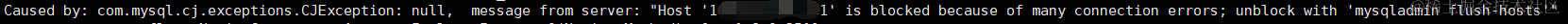 同一个ip在短时间内产生太多(超过mysql数据库max_connect_errors的最大值)中断的数据库连接而导致的阻塞
