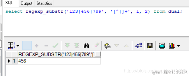 Oracle regexp_substr 天天代码码天天 2023-06-05 112 阅读1分钟 select regexp_substr('123|456|789', '[^|]+', 1, 2) from dual;