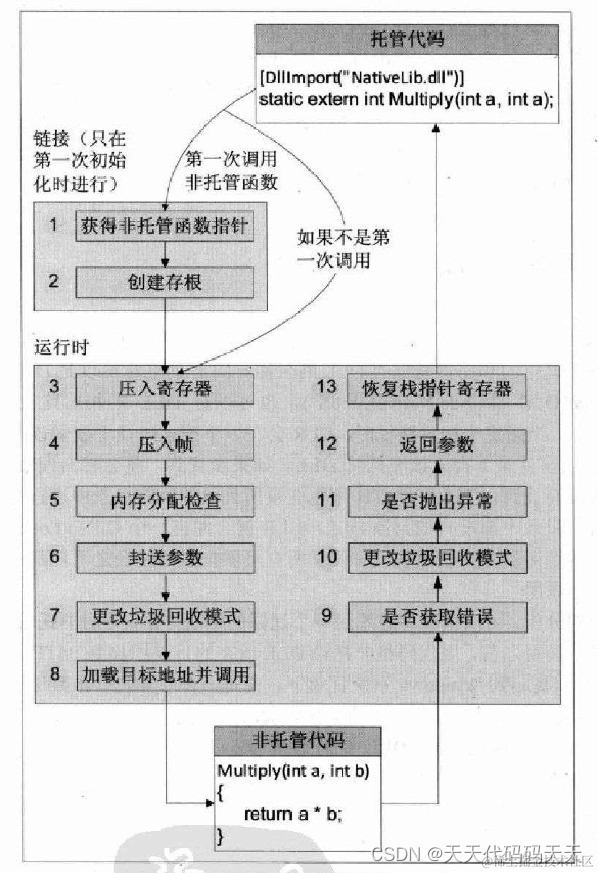 (1)调用LoadLibrary加载非托管DLL到内存中,并调用GetProcAddress 获得内存中非托管函数的指针。