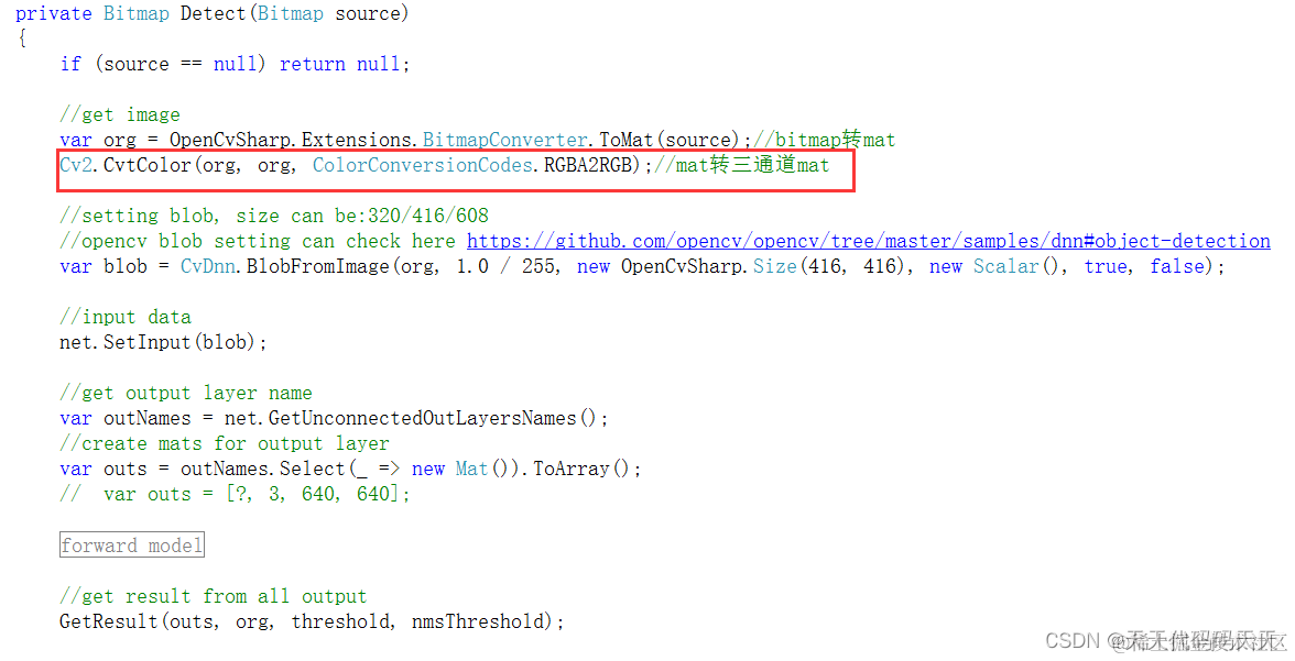 Cv2.CvtColor(org, org, ColorConversionCodes.RGBA2RGB);//mat转三通道mat