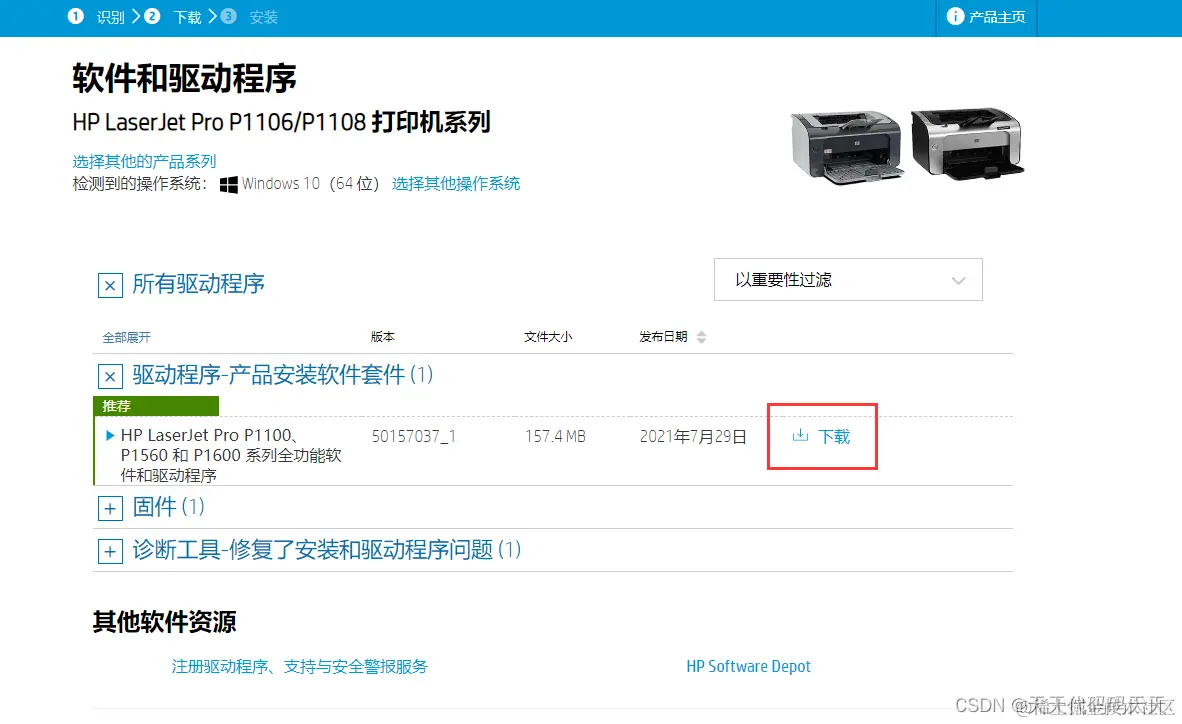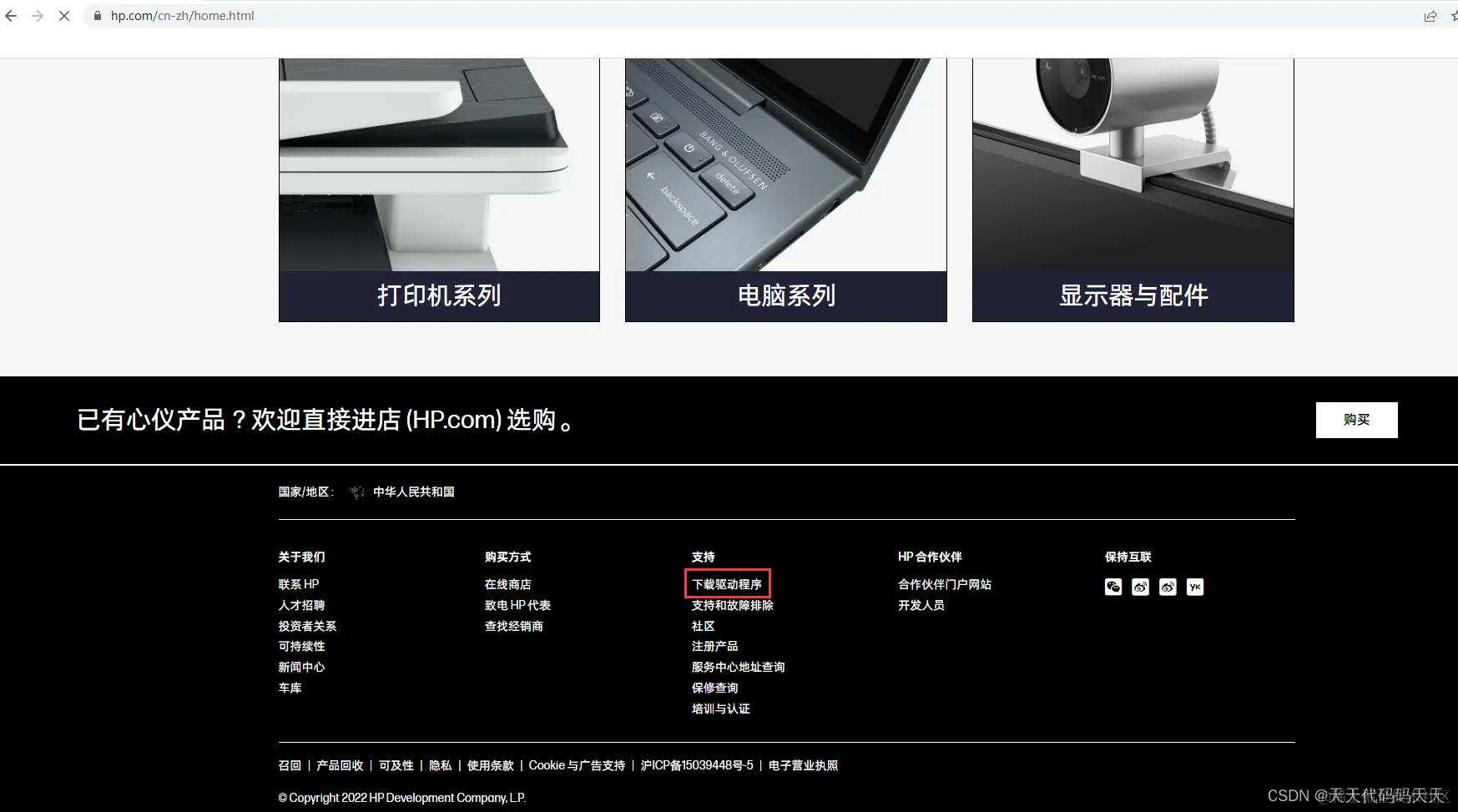 惠普打印机驱动安装 天天代码码天天 2023-06-05 659 阅读1分钟 1、进入官网 www.hp.com.cn 2、点击支持-软件与驱动程序-输入型号-下载套件驱动就可以 。 3、电脑先不要连打印机 ,安装驱动的过程中会提示连接,然后再连接。