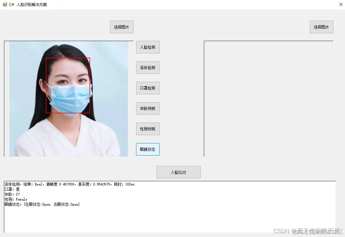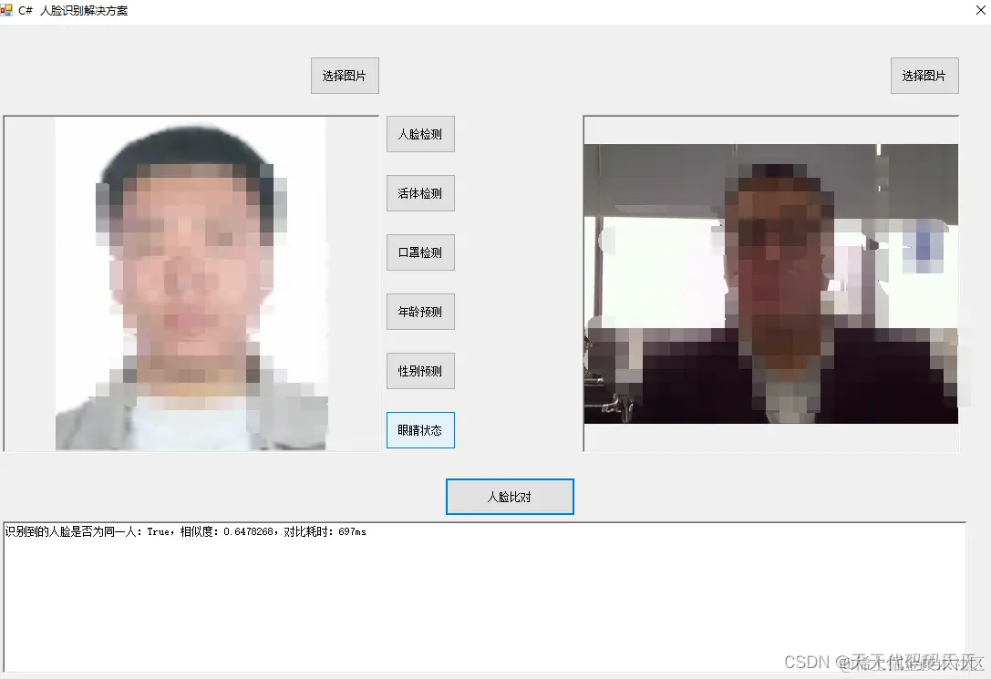 msg = "识别到的人脸是否为同一人:" + isSelf + ",相似度:" + similarity + ",对比耗时:" + sw.ElapsedMilliseconds + "ms";