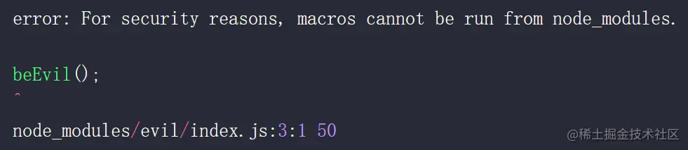 macro在node_modules禁用。如果一个package试图调用macro,将会报错如下:不过用户可以将package作为