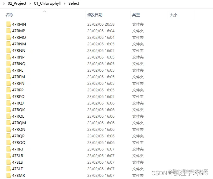 首先,来看一下本文所需实现的需求。如下图所示,现有多个文件夹,其中每一个文件夹内部都含有大量的栅格遥感影像。