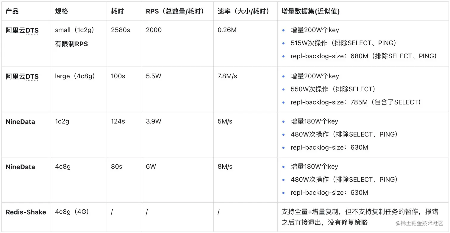 NineData( www.ninedata.cloud/) 在Redis的同步上,提供了稳定和高效的解决方案,并且性能上也领先其他同步工具,特别是在同步的动态限流、数据对比修复和限流、异常修复和断点续传等能力上也支持的最完善。