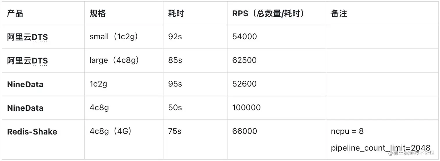 - 同步规格4c8g,NineData 比 DTS 的性能高70%,比Redis-Shake性能高50% 。