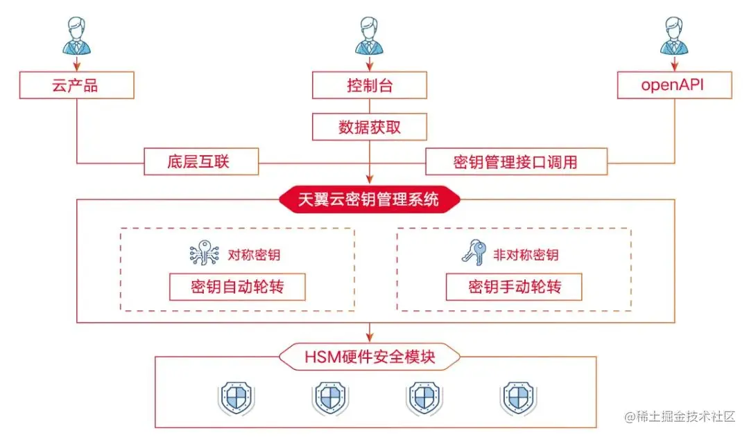 天翼云密钥管理系统(KMS)经过严格的安全设计,提供密钥生成、分发以及全生命周期管理服务,依托国家密码管理局批准的密码硬件设备,能够保护密钥的保密性、完整性和可用性,符合监管合规要求。同时,天翼云自研密钥管理系统(KMS)具备“云原生”优势,与天翼云云硬盘、对象存储、弹性文件等云服务无缝集成,实现了云上原生数据的加密保护。