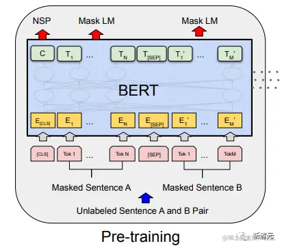 Pre-Training阶段那么BERT想用双向的Transformer模型,就不得不放弃GPT中所采用的语言模型来作为预训练的目标函数。取而代之的,BERT提出了一种完全不同的预训练方法。