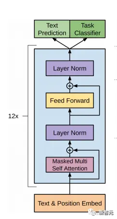 但ELMo使用的是RNN来完成语言模型的预训练,那么如何使用Transformer来完成预训练呢?单向Transformer结构OpenAI GPT采用了单向Transformer完成了这项预训练任务。