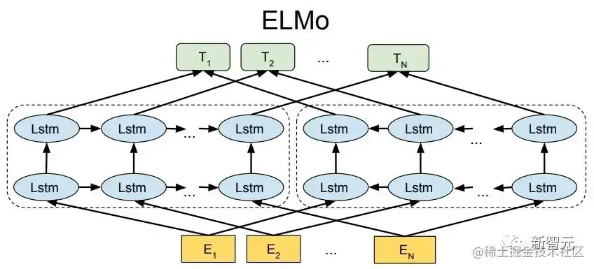 如果已经理解了Transformer的原理,那么只需要再搞懂上面的三个内容就能够对GPT有更深的认识。Pre-Training 训练方式很多机器学习任务都需要带标签的数据集作为输入完成。但是我们身边存在大量没有标注的数据,例如文本、图片、代码等等。标注这些数据需要花费大量的人力和时间,标注的速度远远不及数据产生的速度,所以带有标签的数据往往只占有总数据集很小的一部分。随着算力的不断提高,计算机能够处理的数据量逐渐增大。如果不能很好利用这些无标签的数据就显得很浪费。所以半监督学习和预训练+微调的二阶段模式整变得越来越受欢迎。最常见的二阶段方法就是Word2Vec,使用大量无标记的文本训练出带有一定语义信息的词向量,然后将这些词向量作为下游机器学习任务的输入,就能够大大提高下游模型的泛化能力。但是Word2Vec有一个问题,就是单个单词只能有一个Embedding。这样一来,一词多义就不能很好地进行表示。ELMo首先想到了在预训练阶段为每个词汇集其上下文信息,使用的是基于bi-LSTM的语言模型给词向量带上上下文语义信息: