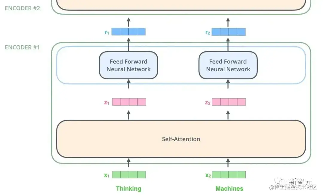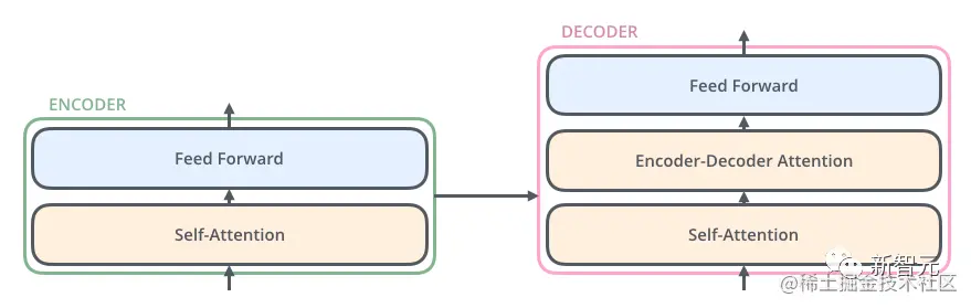 每个Transformer单元都有两个最重要的子层,分别是Self-Attention层与Feed Forward层,后面会对这两个层的详细结构做介绍。文章使用Transformer搭建了一个类似Seq2Seq的语言翻译模型,并为Encoder与Decoder设计了两种不同的Transformer结构。