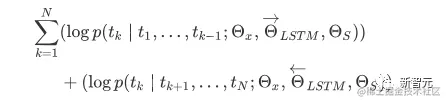 上式分别代表了左右两向的LSTM-RNN,他们共享输入的词向量X以及RNN各层权重S,也就是使用双向RNN两向的输出,来同时预测下一个单词(右向的下一个,左向的上一个),具体结构如下图所示: