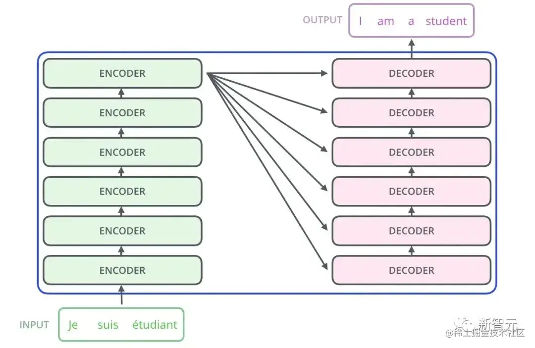了解了Transformer的大致结构以及如何用它来完成翻译任务后,接下来就看看Transformer的详细结构: