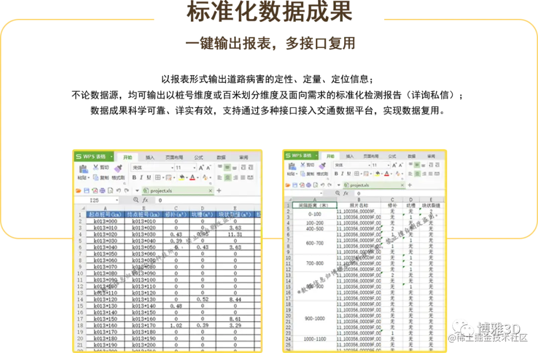 【RGB3DS道路表观病害信息智慧检测系统】根据道路行业现行检测规程中的相关要求而设计,不仅带来高准确率,面积计算也从矩形估算升级为精准的沿病害边缘计算,数据成果精确至毫米级别。