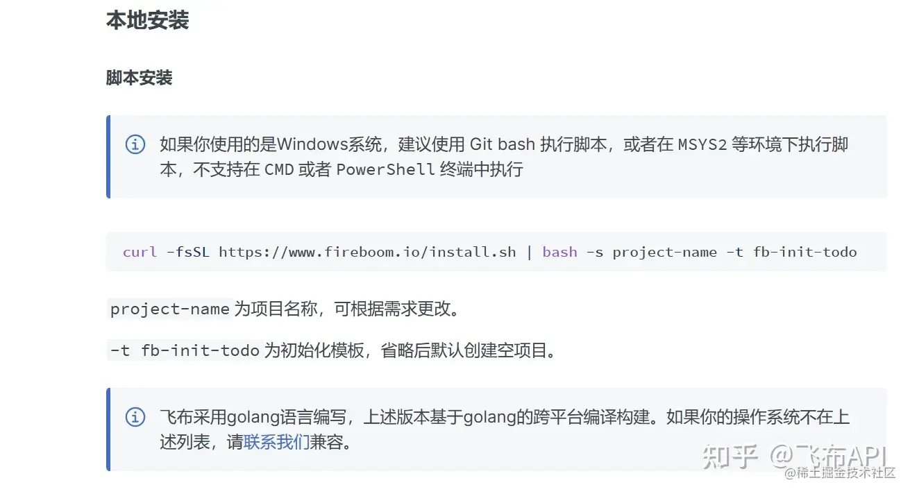 如果想将飞布安装到本地,可以在飞布官方文档中获取脚本。使用飞布文档中的脚本安装命令,执行完成后本地服务会启动,复制控制台打印的地址,即可在浏览器中正常访问。飞布目前支持unix和windows操作系统。如果你使用的是其他操作系统,请联系飞布团队兼容。