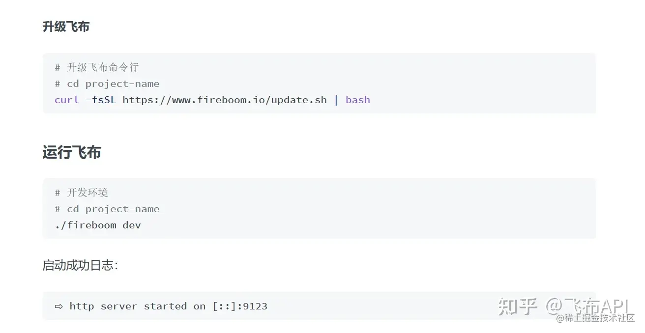 飞布一直在持续更新迭代中。及时升级飞布,可以第一时间体验到飞布的新功能。升级飞布的命令行也发布在飞布的产品文档中。使用飞布文档中的升级命令,即可完成飞布的升级,升级完成后,进入项目所在的文件夹,执行开发环境的启动命令,即可完成服务的启动。