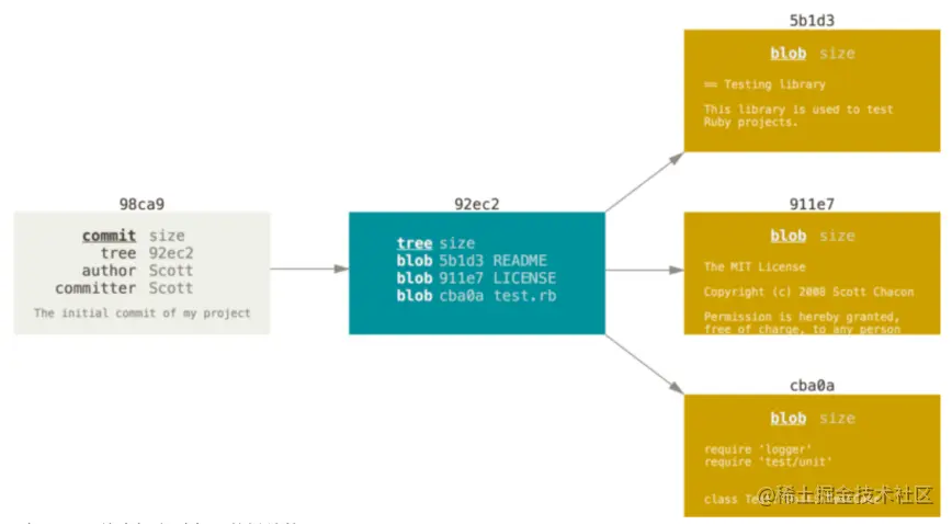commit/tree/blob在git里面都统一称为Object,除此之外还有个tag的object。
