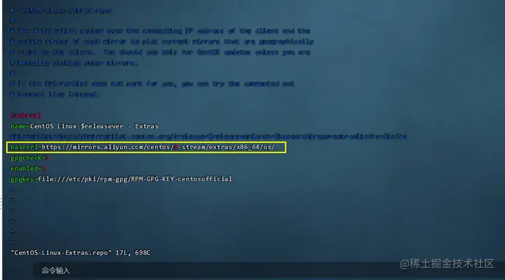 修改CentOS-Linux-Extras.repo的baseurl为mirrors.aliyun.com/centos/8-st…
