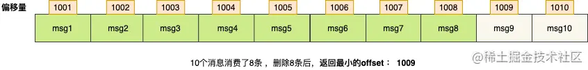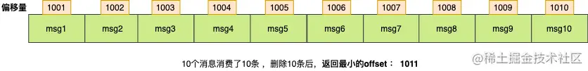 listener.consumeMessage; - 消费完成后,若消费成功,则更新偏移量