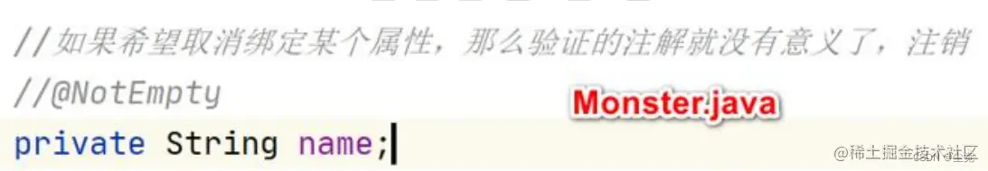 即:当表单提交字段为 name时, 就不在把接收到的name值,填充到model数据的monster的name属性