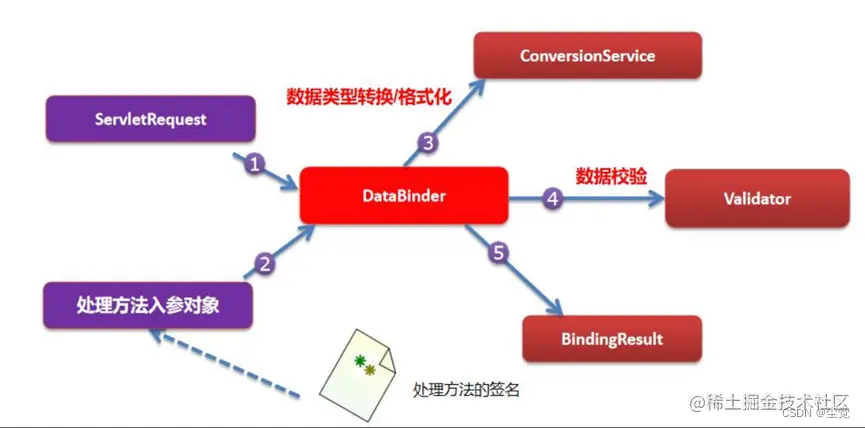 图例 Spring MVC 通过反射机制对目标方法进行解析,将请求消息绑定到处理方法的入参中。