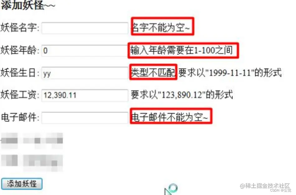 妖怪年龄~: <form:input path="age"/> <form:errors path="age"/> <br><br>