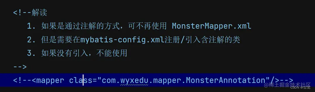 1.如果是通过注解的方式,就不再使用MonsterMapper.xml文件,但是需要在mybatis-config.xml文件中注册含注解的类/接口
