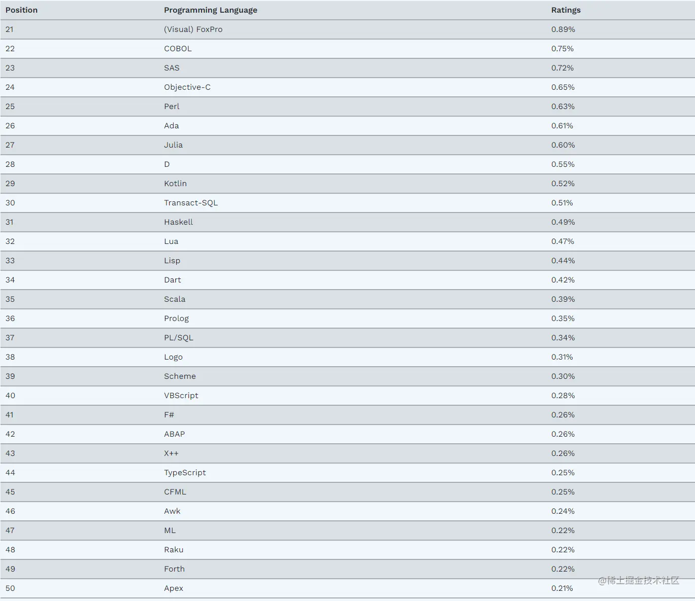 第 21-50 名编程语言排行