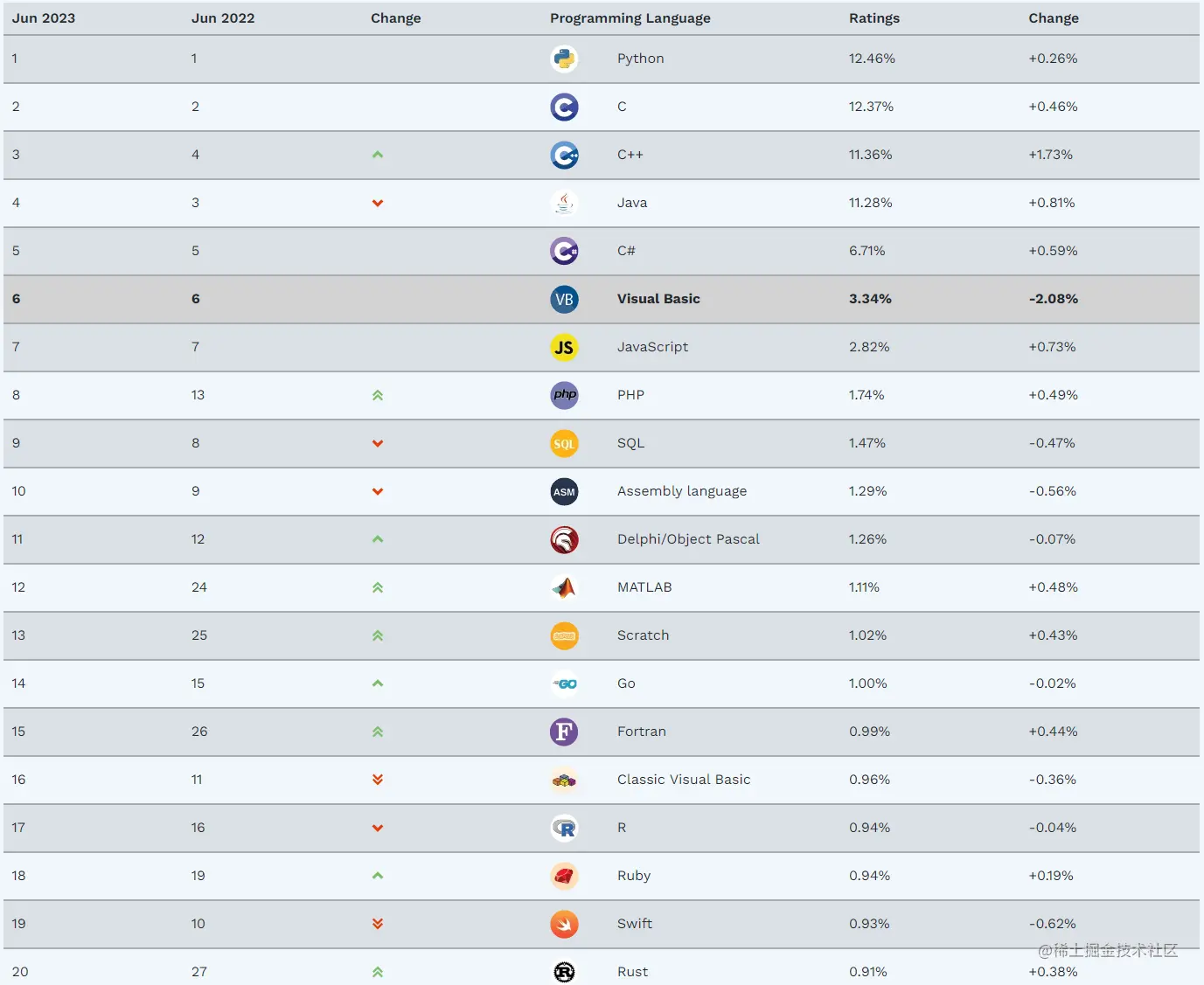 TIOBE 公布了 2023 年 6 月的编程语言排行榜。