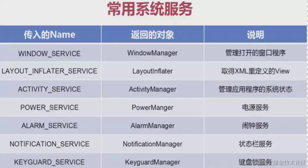 通过getSyetemService()方法并传入一个Name