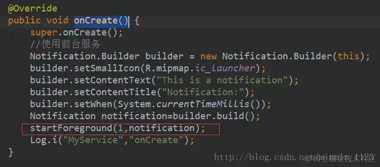 可以在新建的继承Service的类的onCreate()方法中,如下编写: