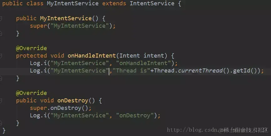 onHandleIntent()方法中打印的线程id进行对比;