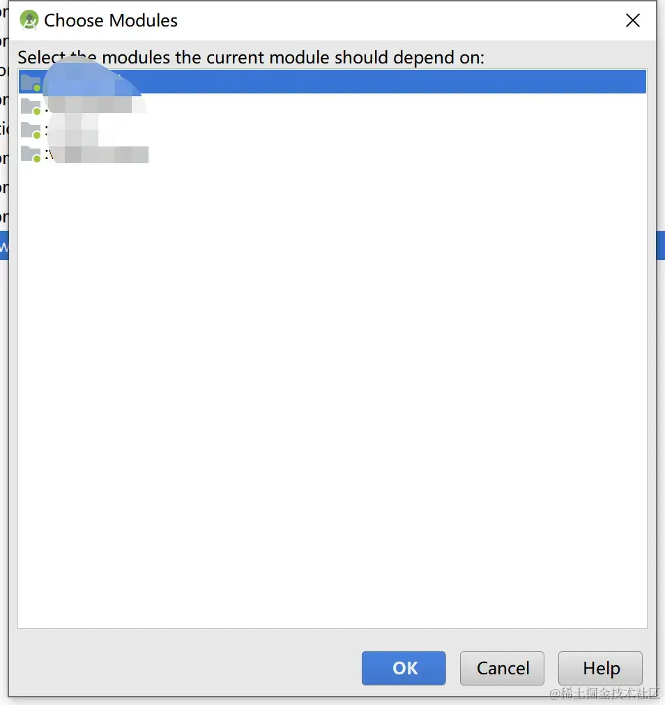 最后在弹出的窗口中选择刚刚引入进来的模块,再点击OK即可完成引入了: