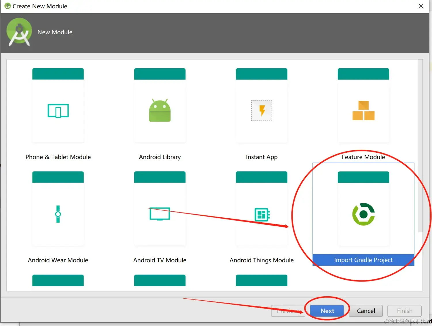 选择他人项目中模块的地址(把别人项目拉到本地,这里选择要引入模块的本地地址),然后点Next: