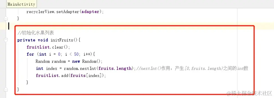 int index = random.nextInt(fruits.length);//nextInt()作用:产生[0,fruits.length)之间的int数