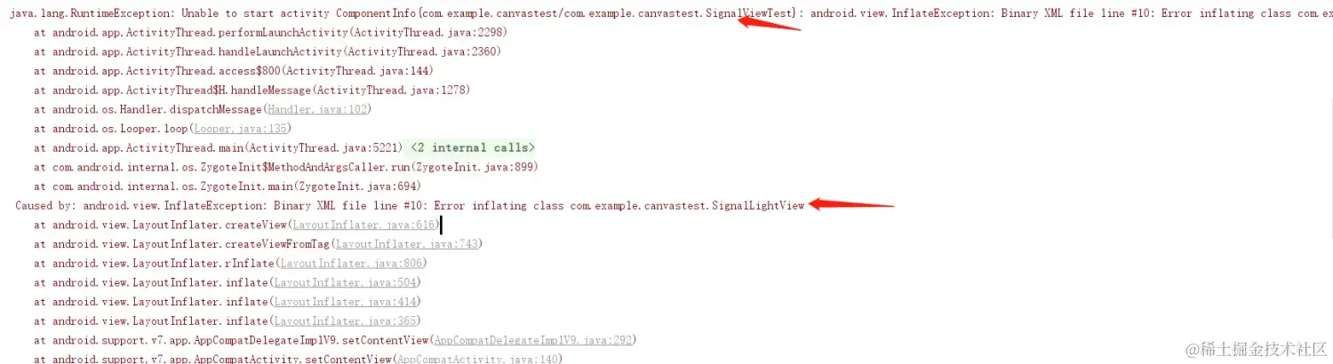 Caused by: android.view.InflateException: Binary XML file line #10: Error inflating class com.example.canvastest.SignalLightView