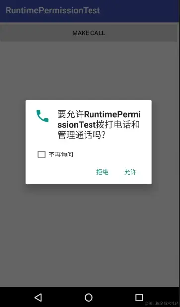 在这之后,我们就成功进入拨打电话界面了,并且至此用户已经完成了授权,之后再点击MakeCall按钮就不会再弹出权限申请对话框了,而是可以直接拨打电话。