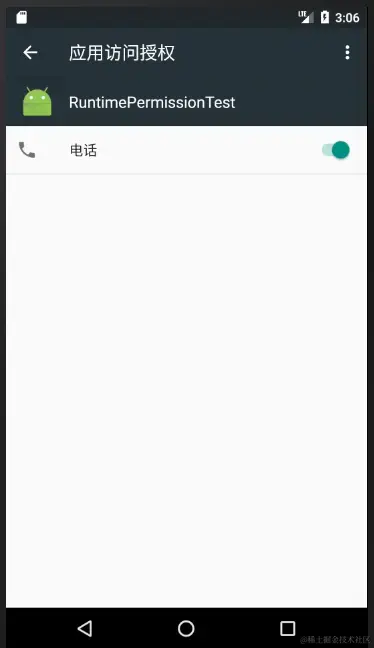 进人Settings→Apps→RuntimePermissionTest→Permissions进行操作即可,界面如图: