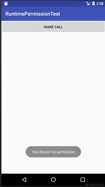 如果点击拒绝,则会弹出Toast: