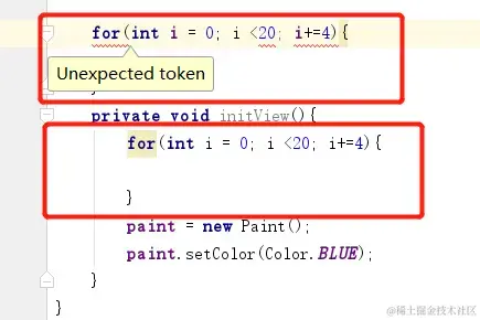 一个很无语的bug——for语句的Unexpected-token 凌川江雪 2023-06-06 97 阅读1分钟 在Android中,for语句是不能像这样被单独写在外面的: 不然会出现下面这个错误(第一个红框): 正确的处理方法就是向第二个红框那样子用一个初始化方法把它封装起来。