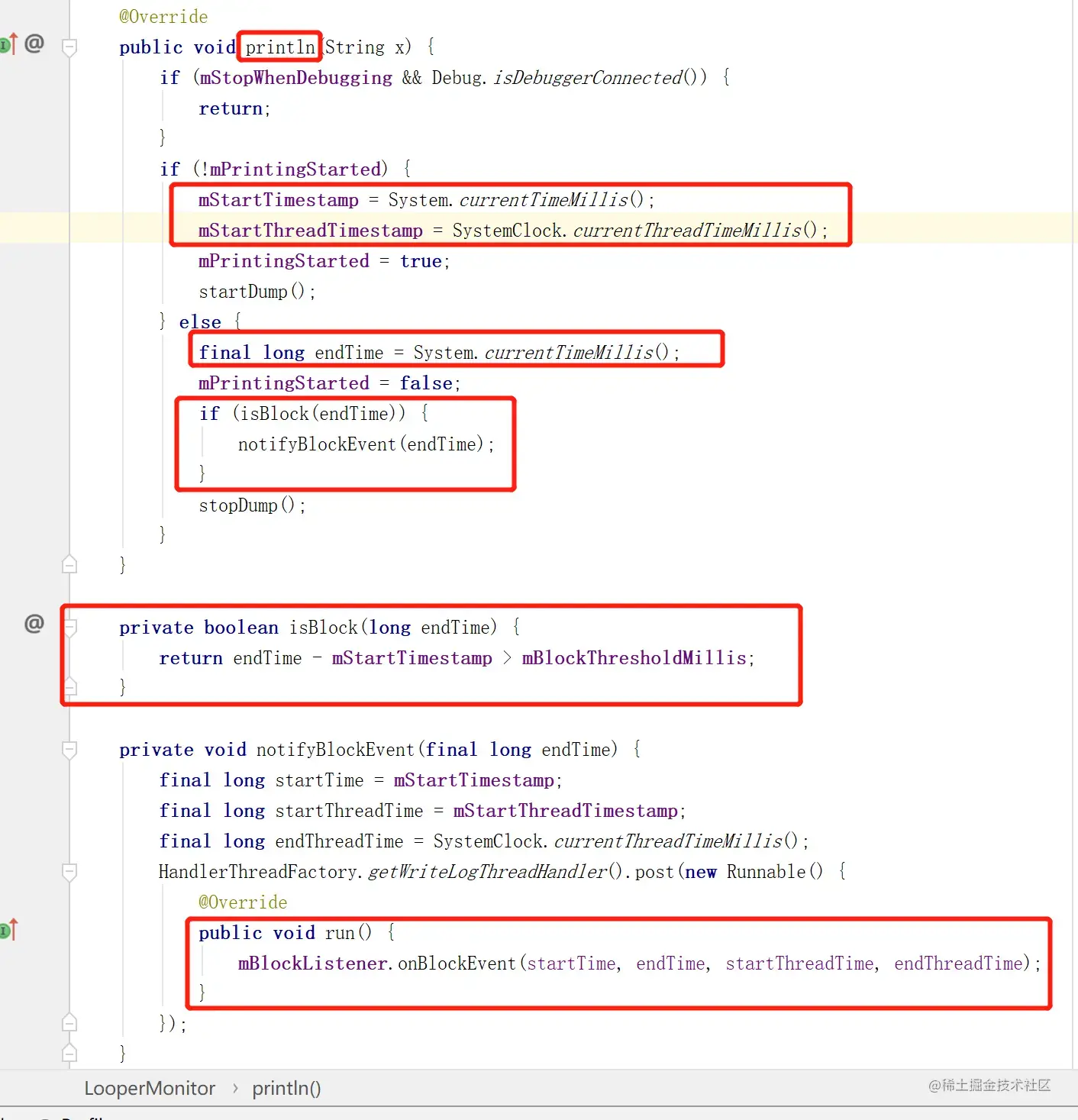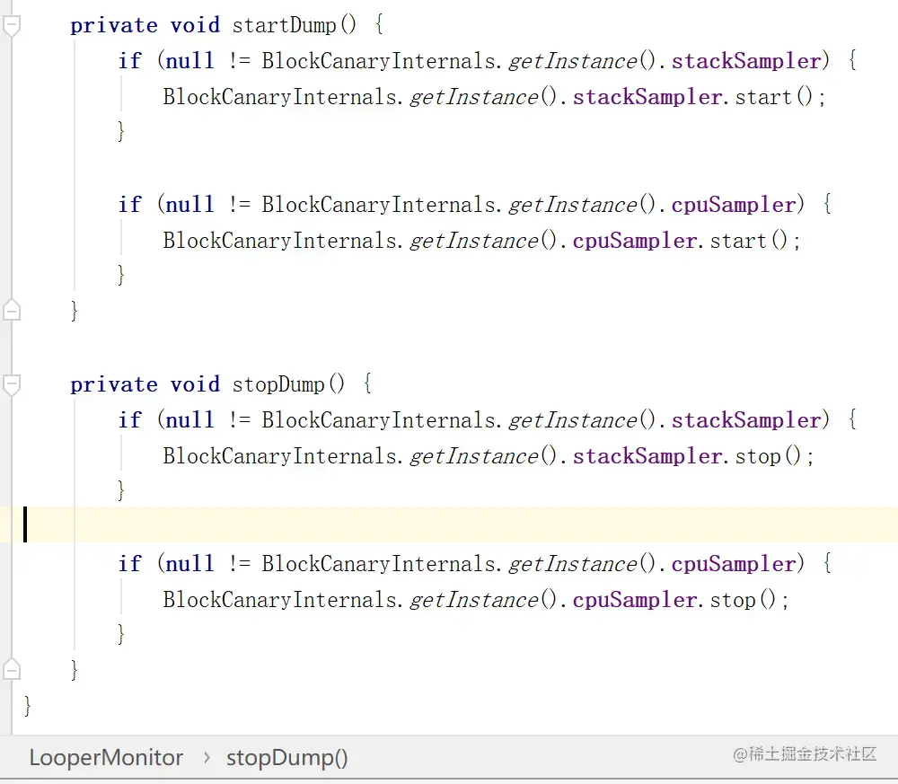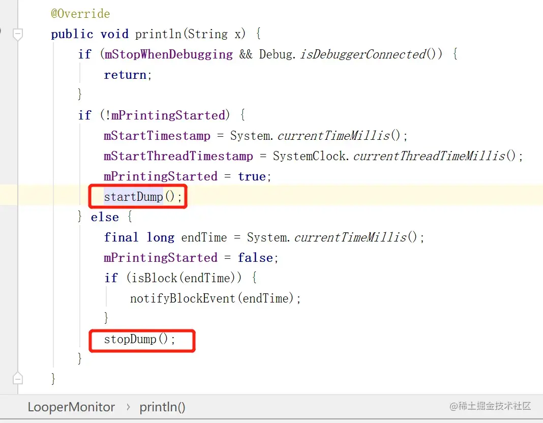 我们可以看到在println()中还有startDump()和stopDump()这两个方法,