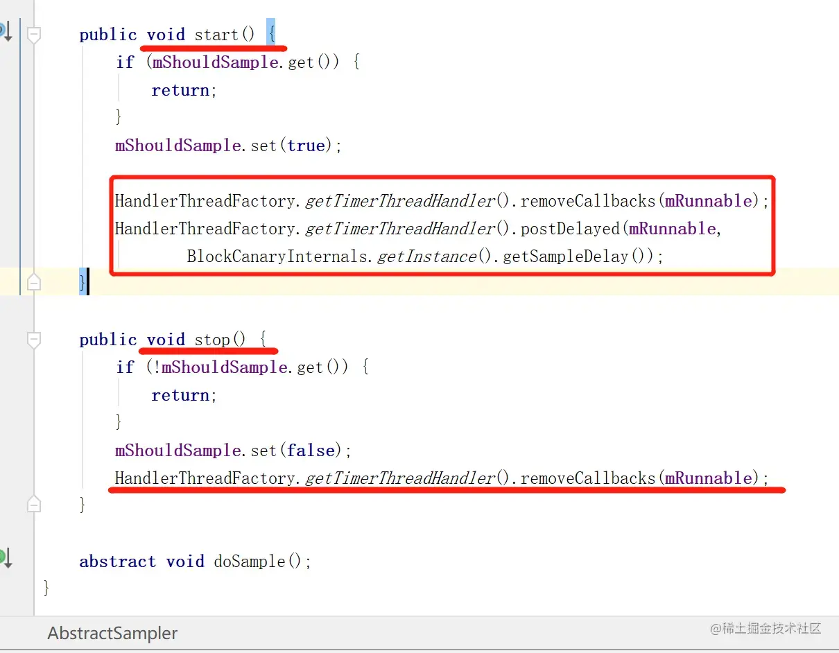 CpuSampler而StackSample都会继承自AbstractSampler,自然也就继承了这start()和stop();