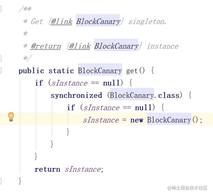有点单例的味道哈,BlockCanary的构造方法是私有的(下图可以见得),get()正是返回一个BlockCanary实例, 当然new这一下也就调用了BlockCanary的构造方法;