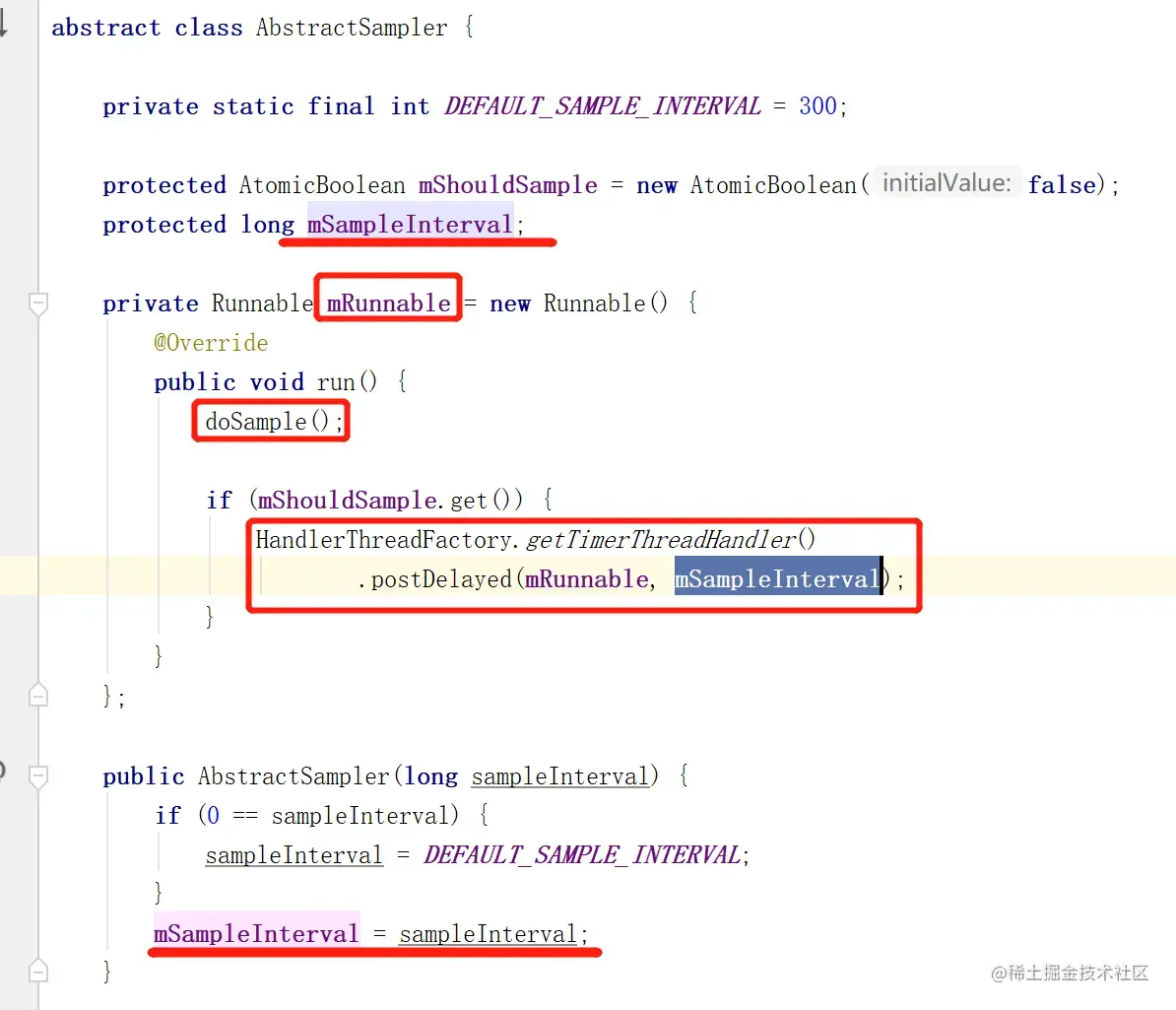 就分别创建了一个CpuSampler(参数正为采集堆栈信息周期属性)和一个StackSample实例(参数为采集堆栈信息周期属性): !!!!!!!!!!!!!!!!!!!!!!!!!!!!!