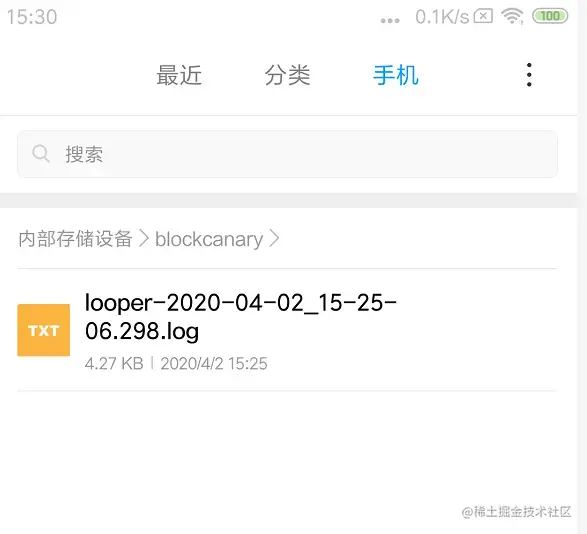 save(一参对应刚刚的字符串"looper",二参为Block字符串信息【最早是来自BlockCanaryInternals中的LogWriter.save(blockInfo.toString());中的 blockInfo.toString() 】):可以看到
