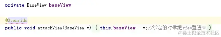 mainPresenter.attachView(this);//绑定view(把this付给业务逻辑类中的全局变量,