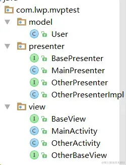 这里, 我们在presenter包下写好 抽象的业务逻辑接口BasePresenter , 在接口里面定义好抽象的业务逻辑方法, 然后在presenter包下又写下一个对应 抽象的业务逻辑接口BasePresenter的业务逻辑实现类MainPresenter, 用于实现对应的接口; 这样子,我们便把