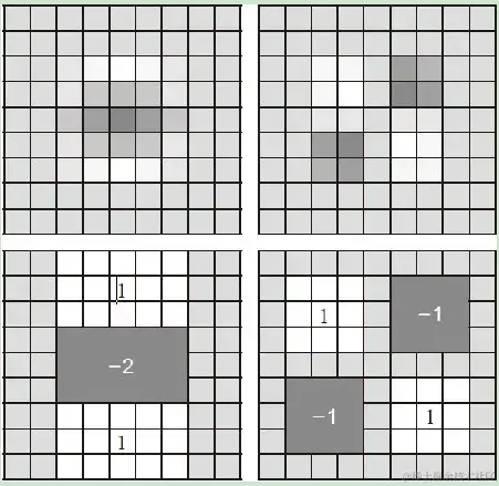 积分图来实现预计算, 通过积分图查找表实现Hessiam矩阵快速计算。离散高斯及其近似梯度算子如下图: