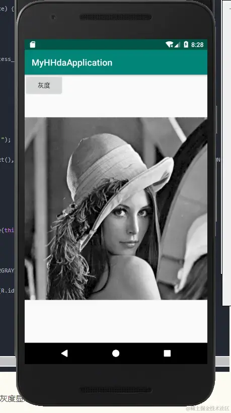 - 点击灰度按钮,图片切换成灰度显示: