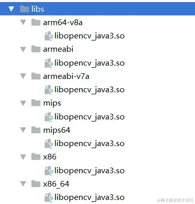 然后把OpenCV Android SDK 目录 native\libs下面的所有文件与文件夹全部复制到libs中去;